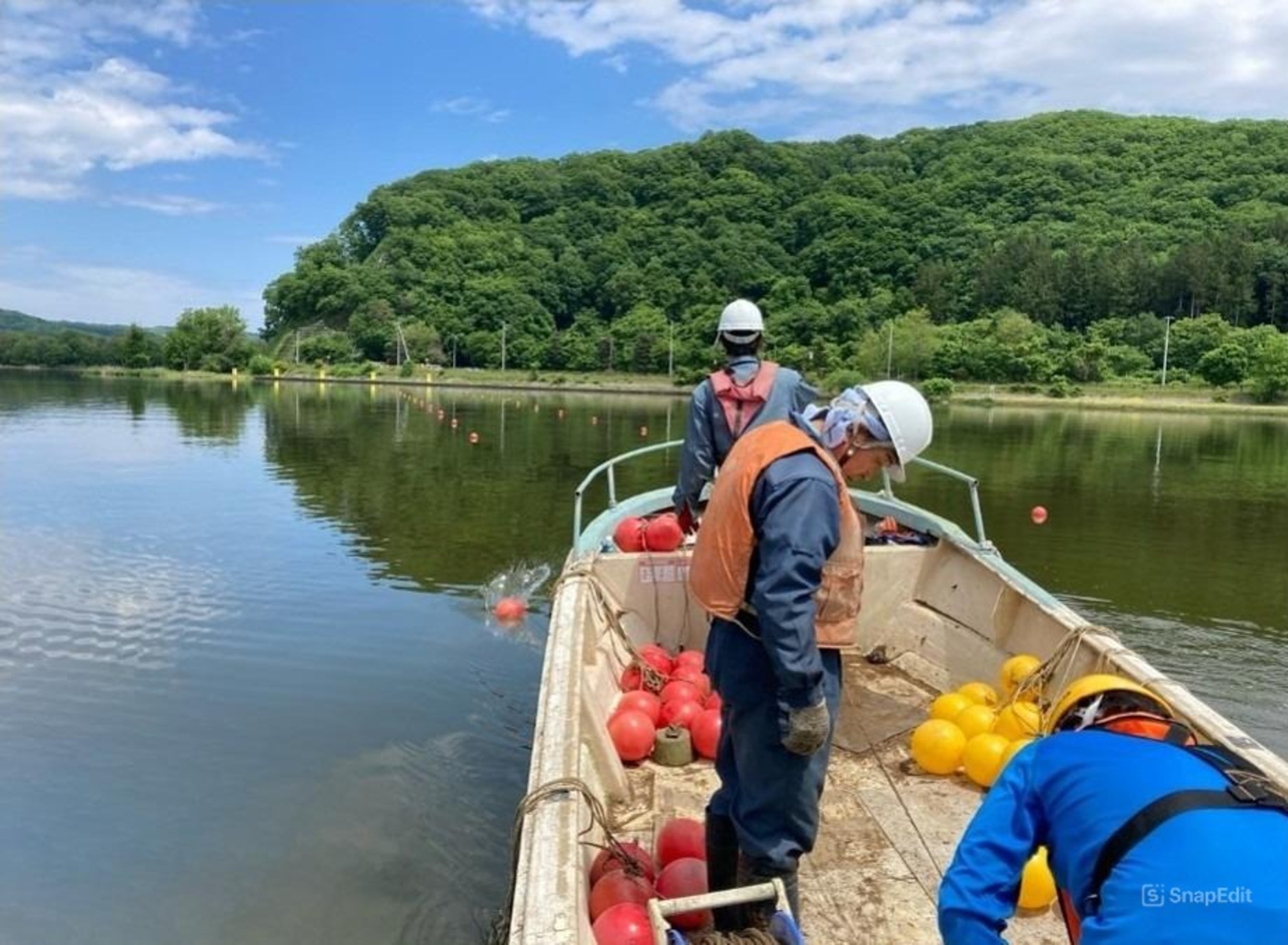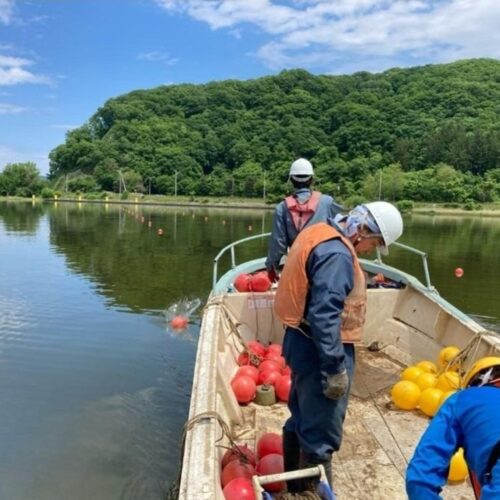 網走湖ボートコース設置工事